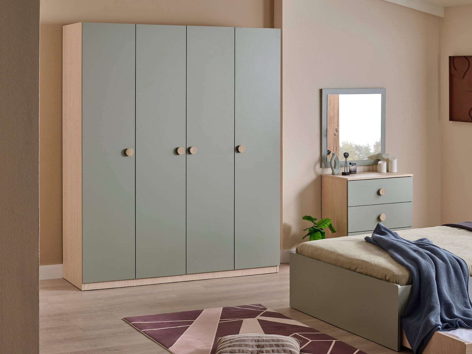 Dulapul cu patru usi din Colectia Mono este un element esential in orice camera de copii, combinand functionalitatea cu un design modern. Dimensiunile sale generoase de 165x54x198 cm ofera spatiu amplu pentru depozitarea hainelor si accesoriilor celor mici. Produsul este realizat din PAL laminat E1 de 18 mm, asigurand o durabilitate excelenta si o stabilitate de lunga durata intr-un mediu domestic.