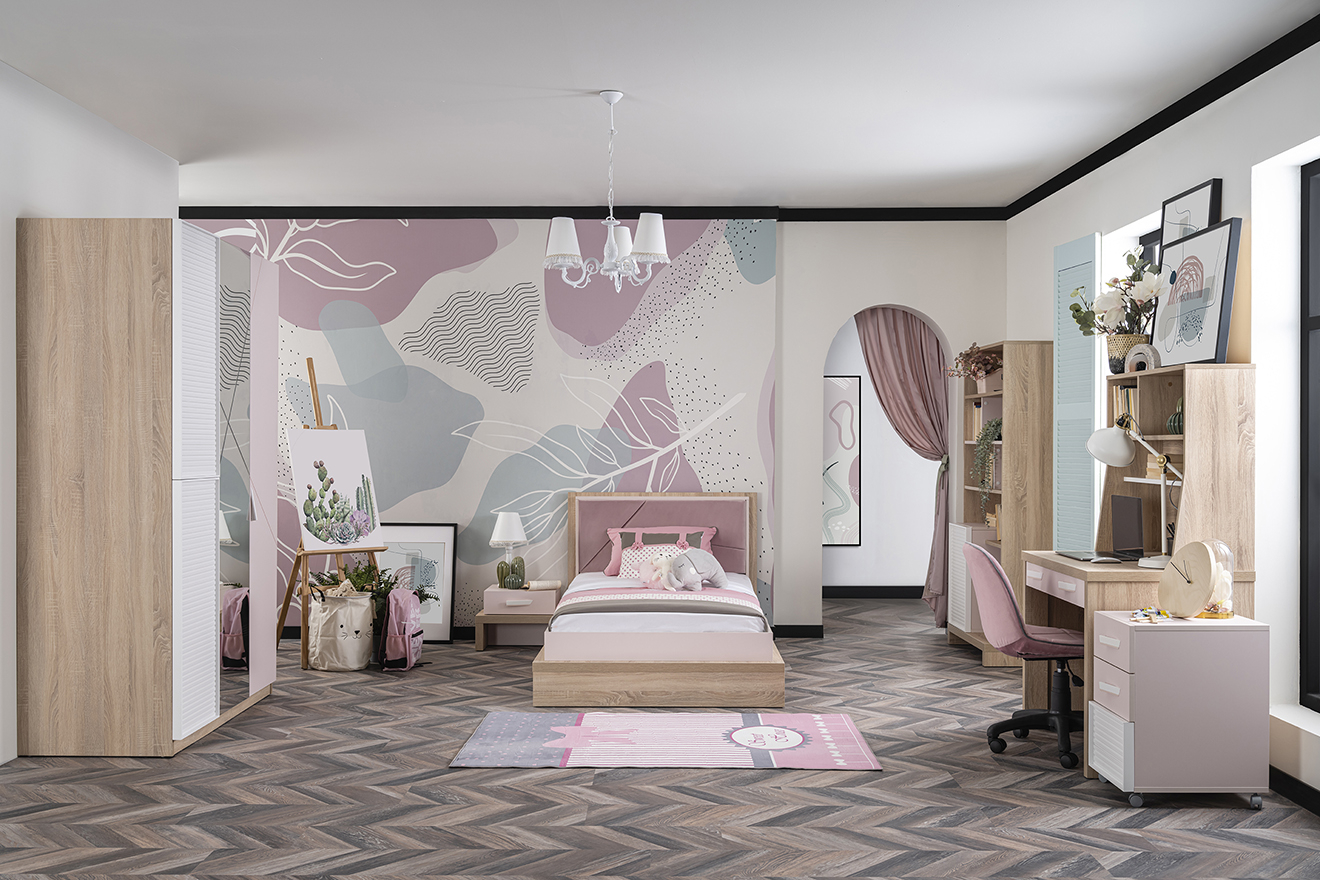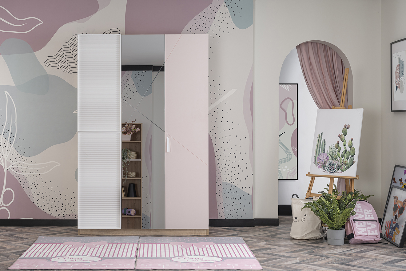 Dulapul copii 3 usi Angel City ofera o solutie eleganta si functionala pentru camera fetelor. Designul modern al dulapului il face potrivit pentru orice decor, aducand un plus de rafinament si ordine. Dimensiunile generoase de 133x64x204 cm ofera suficient spatiu pentru hainele si accesoriile celor mici, asigurand un mediu organizat si aerisit.
