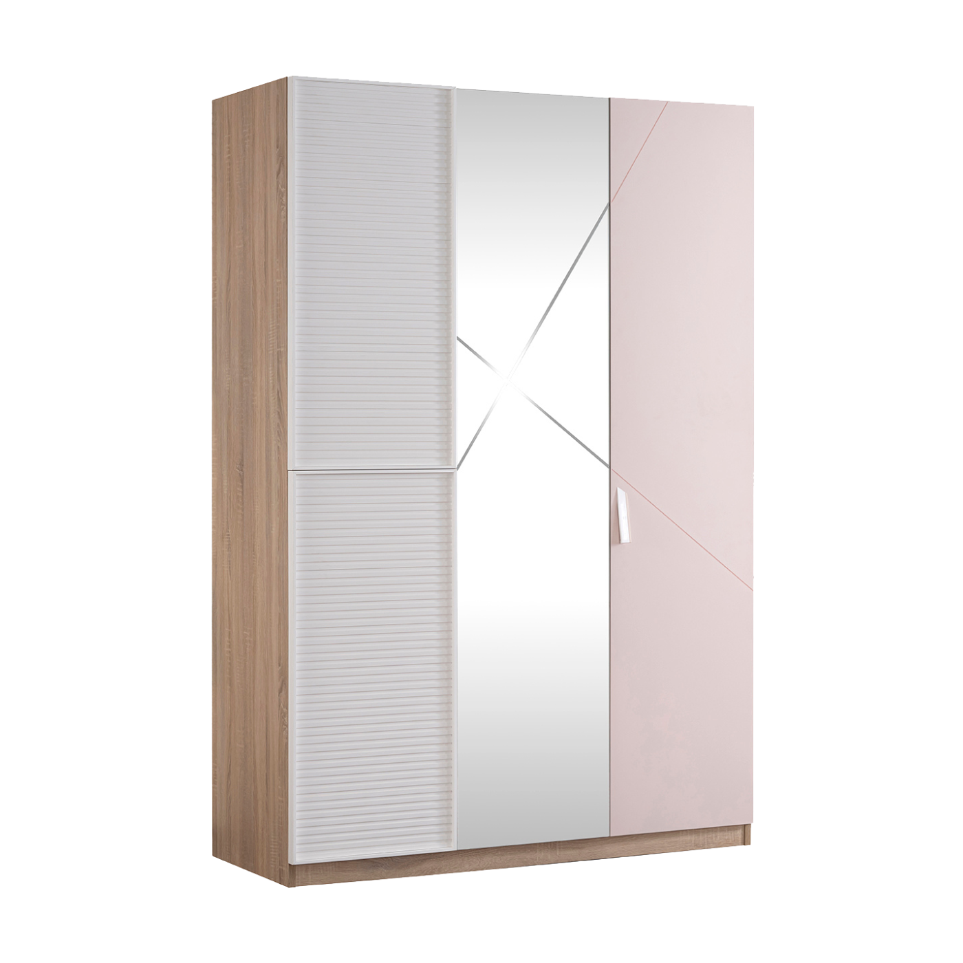 Acest dulap se remarca prin functionalitatea sa, avand trei usi si o oglinda integrata, care faciliteaza pregatirea zilnica. Mecanismul de inchidere silentioasa asigura folosirea fara zgomot, ideal pentru momentele de liniste din camera. Compartimentarea inteligenta permite organizarea eficienta a hainelor si accesoriilor, fiind potrivit atat pentru utilizarea zilnica, cat si pentru depozitarea sezoniera.