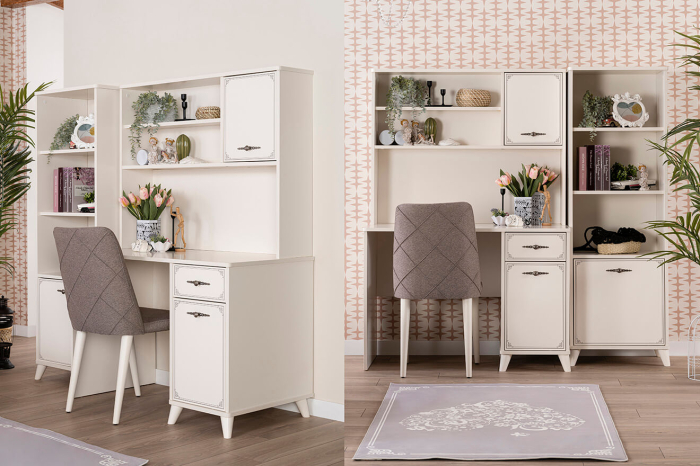 Biroul Perla S oferă un spațiu de lucru ergonomic, ideal pentru teme, proiecte și activități creative.