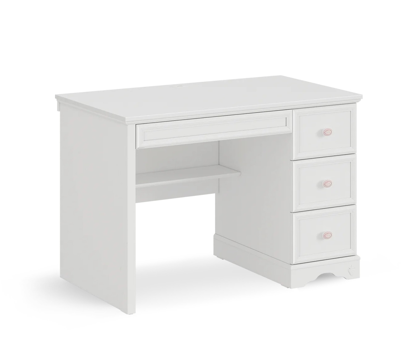 Unitate pentru birou mic de studii Colectia Rustic White reprezinta o piesa de mobilier ce ofera simplitate si caldura camerei unei fete. Formele ofera eleganta in combinatie cu nuantele de alb luminos, ofera o nota de autenticitate oricarui decor. Gama variata de mobilier pentru copii si adolescenti permite aranjarea integrala a incaperii pana la cele mai mici detalii.
