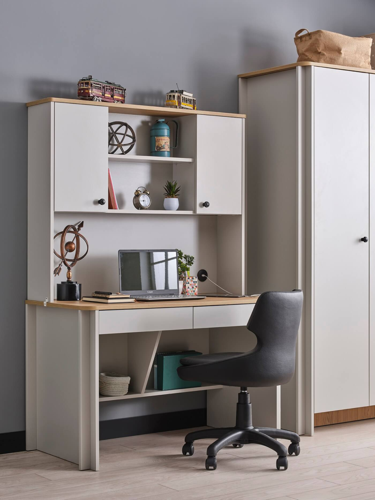 Unitatea de birou din colectia Sirius nu doar ca imbunatateste organizarea, dar contribuie si la crearea unui mediu propice studiului si creativitatii. Adolescentii beneficiaza de un spatiu bine structurat care le sustine activitatile educationale si creative. Pe langa utilitatea practica, designul modern si atractiv adauga un plus de stil camerei, motivand utilizatorii sa isi petreaca timpul productiv intr-un mediu placut si inspirator.