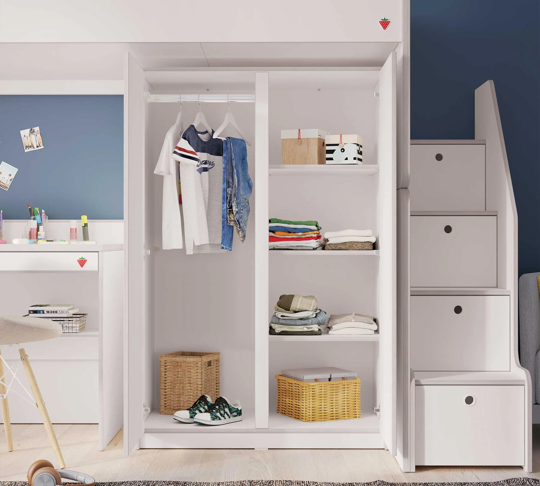 Gama variata de mobilier permite aranjarea integrala a incaperii pana la cele mai mici detalii. Set pat etajat pentru camera copii, colectia Studio White imbina armonios estetica, functionalitatea si rezistenta.