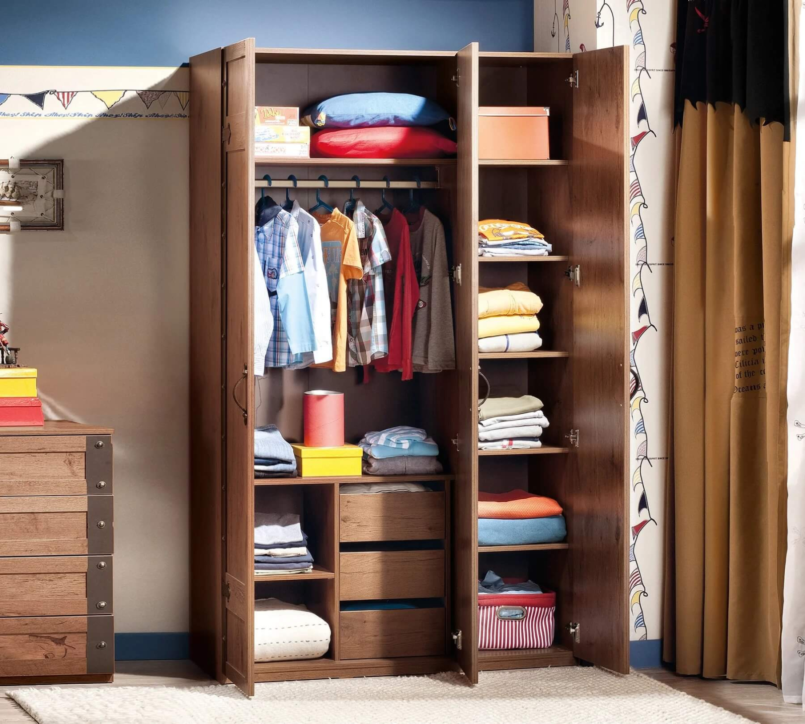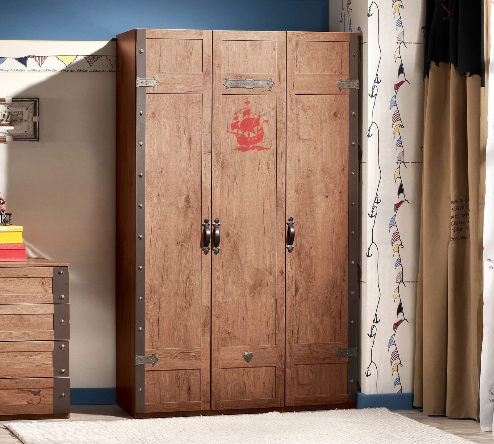 Dulap cu 3 usi, pentru copii Pirate Brown, 121x54x203 cm