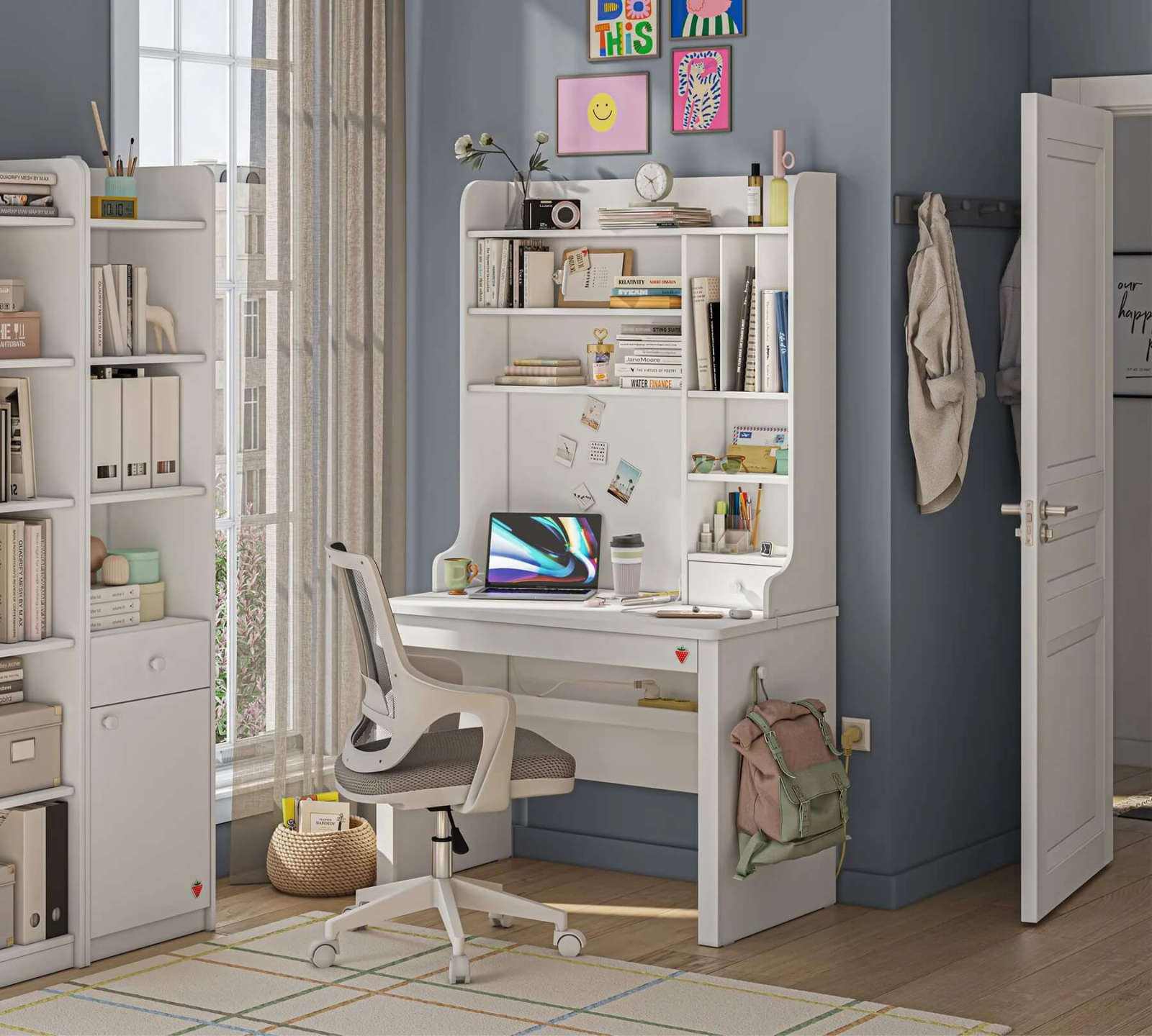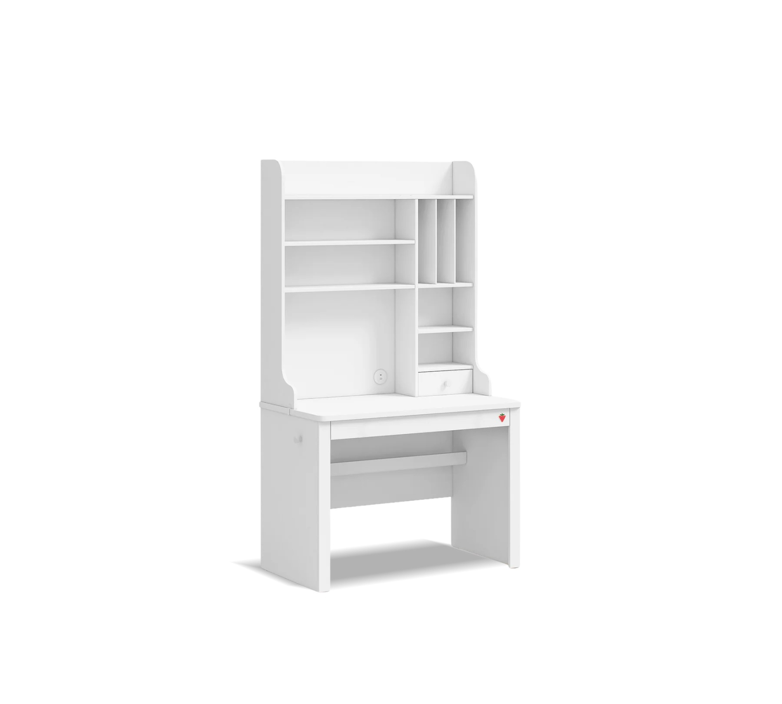 Unitate pentru birou,cu port USB și rafturi pentru carți, colectia Varia White imbina functionalitatea cu stilul modern, fiind conceput special pentru a transforma spatiile de lucru ale copiilor. Cu un design elegant, Unitatea ofera un mediu de lucru organizat si eficient, datorita structurii sale cu rafturi multiple si sertar special pentru papetarie si carti. Dimensiunile sale sunt ideale pentru utilizarea computerului, oferind un spatiu optim pentru studiu si lucru.