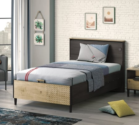 Pat cu spatiu depozitare, USB, adolescenti Colectia Black 100x200 cm se remarca printr-un design in stilul „modern”, care se incadreaza cu succes in interiorul unei camere luminoase si originale, indiferent daca este o camera de zi sau dormitor.