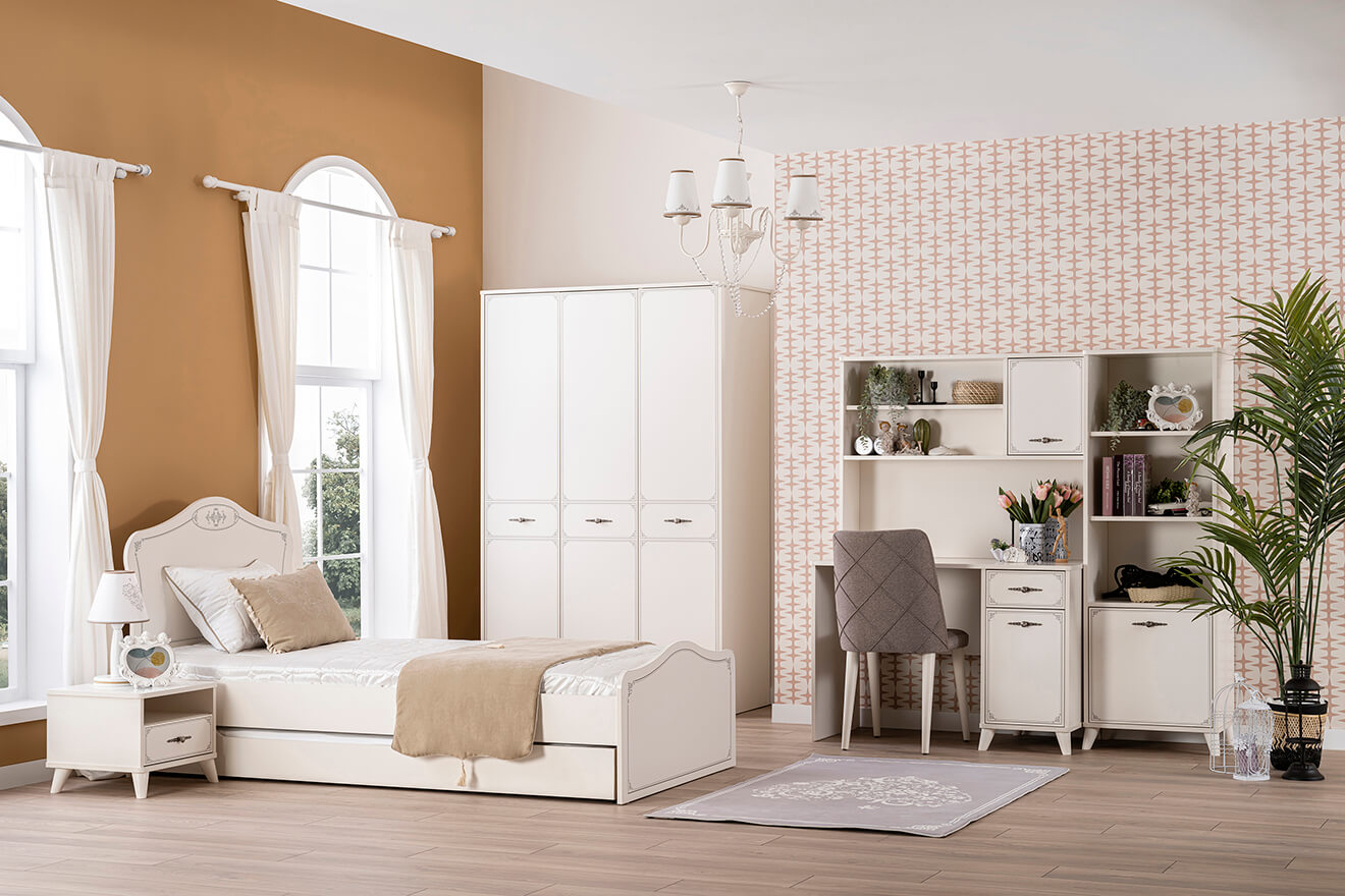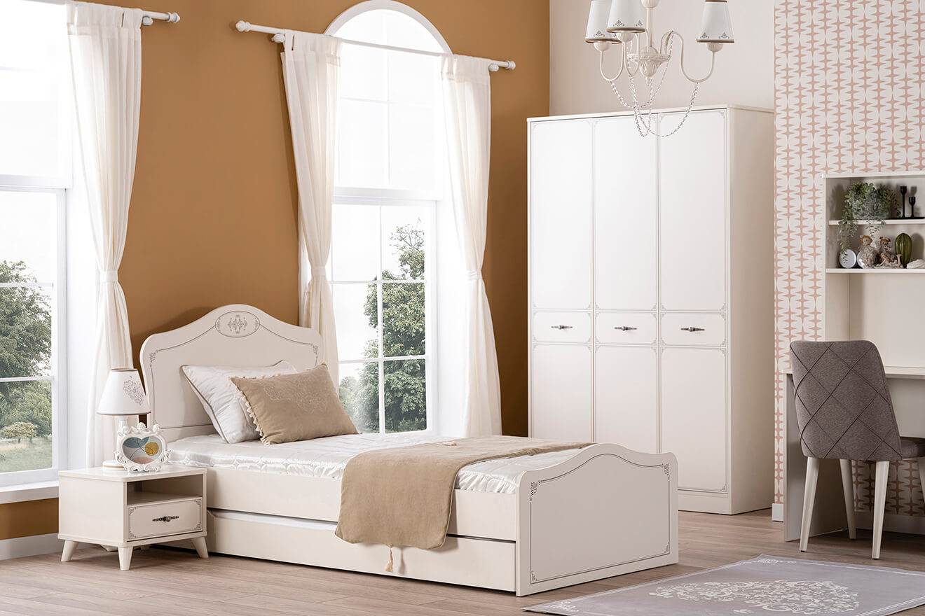 Patul suplimentar din colecția Perla S este o alegere inteligentă pentru familiile care au nevoie de un spațiu de dormit în plus fără a ocupa mult loc.